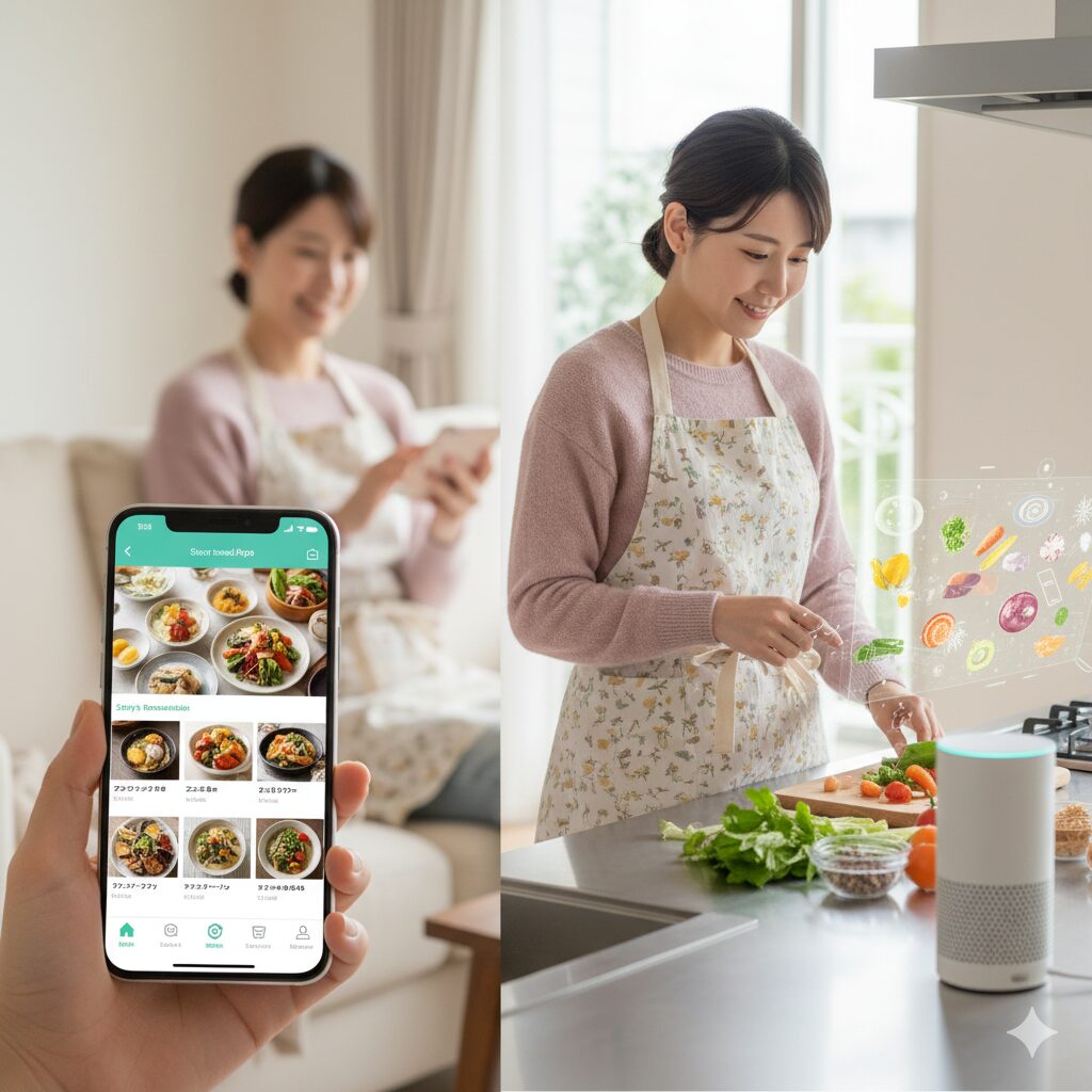 AIアプリを使えば、好みやアレルギー情報、食材の在庫をもとにメニューを自動で提案してくれます。選択肢が整理されることで迷う時間が減り、考えるストレスを軽減しながらも満足度の高い献立を準備できるのが魅力です。
