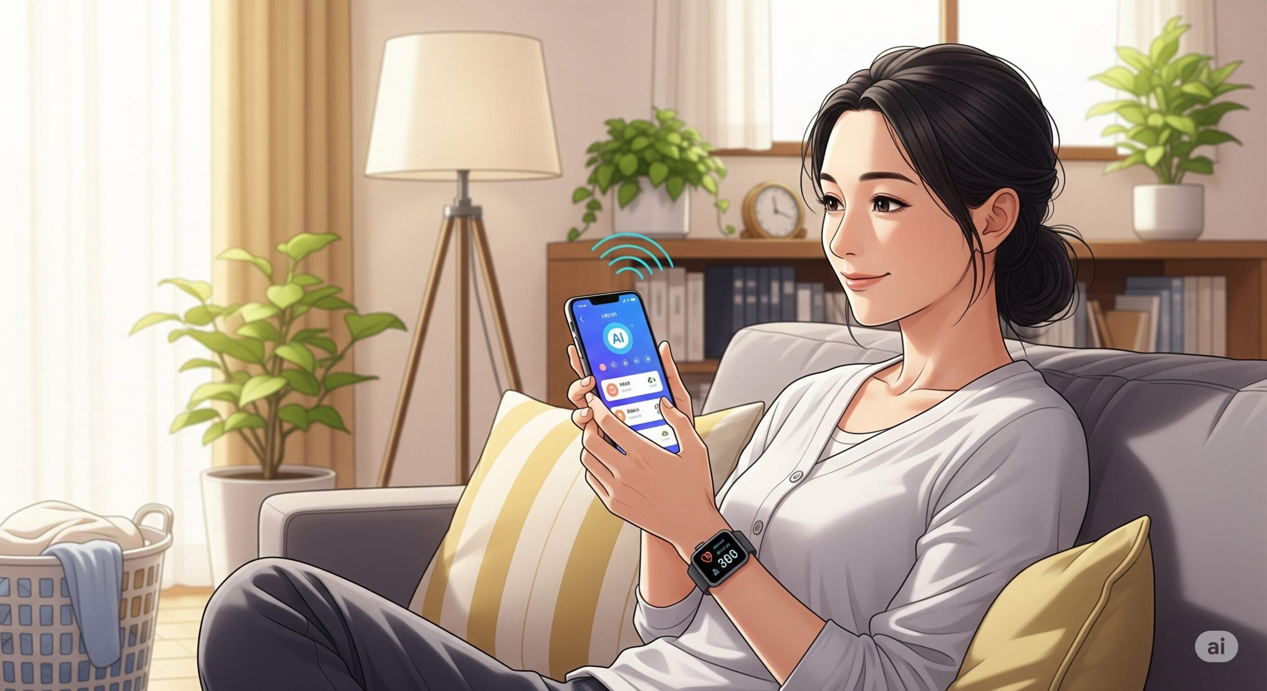 AI連携型のスマート家電を活用すれば、部屋の照明や香りの演出も簡単にコントロールできます。
