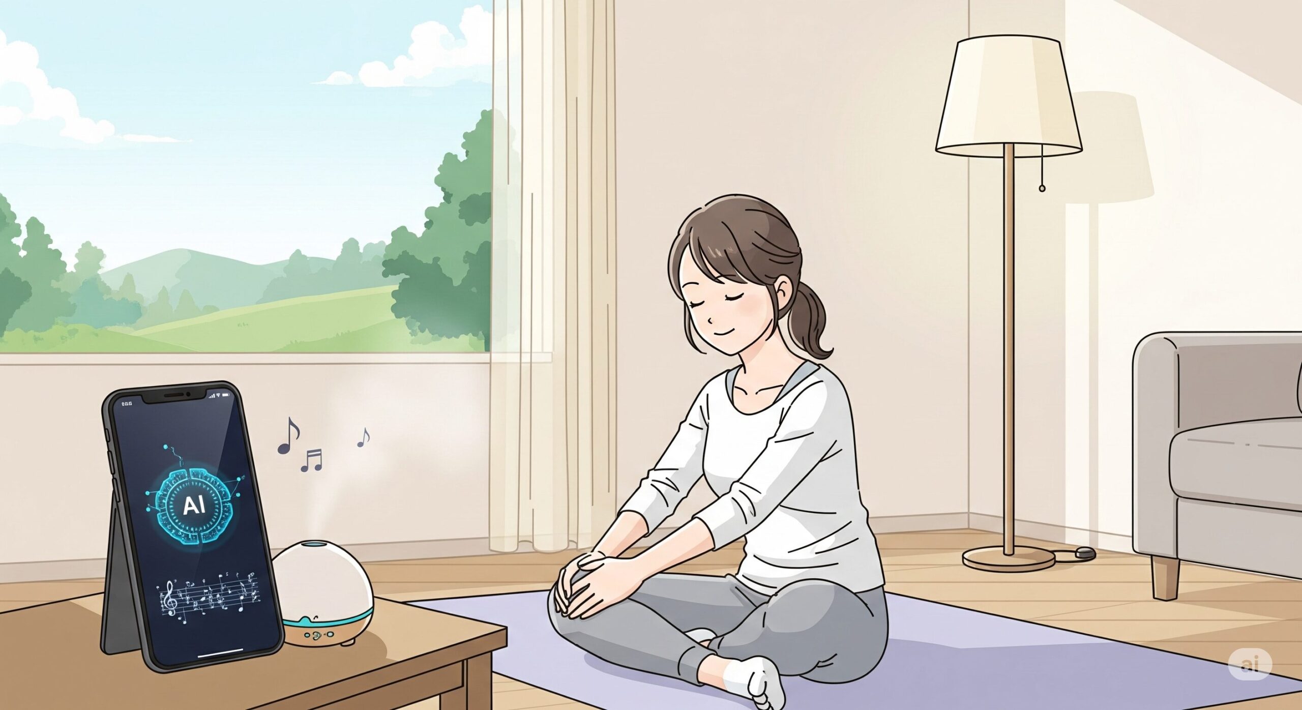 しかし、AIツールを活用すれば、スマホひとつあれば自宅でも外出先でも、気軽にリラックスを実践できます。