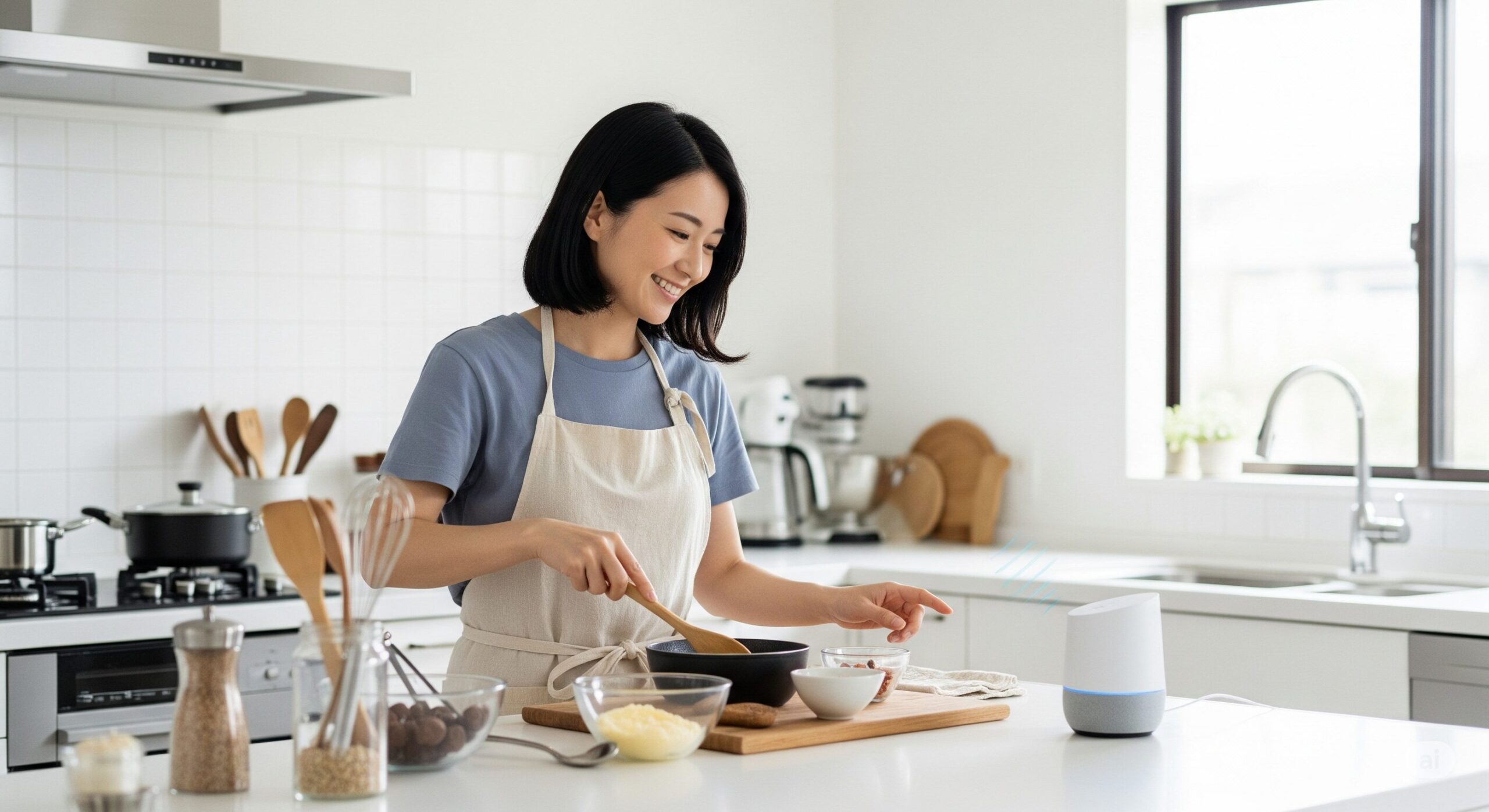 音声アシスタントと連携すれば、手が汚れていても「次の工程は?」「分量は?」と話しかけるだけでレシピを確認できます。 特に、小さなお子さんがいて手が離せない家庭や、時短を極めたい人には便利な機能です。